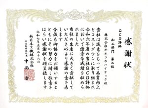 QCD評価 加工部門 第2位を頂戴致しました。