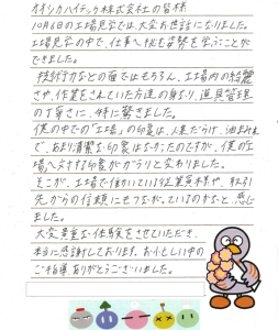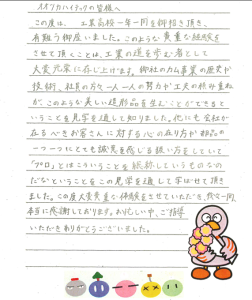 後日、生徒様ひとりひとりから感想文も頂戴しました。
