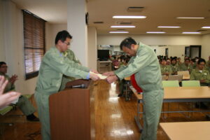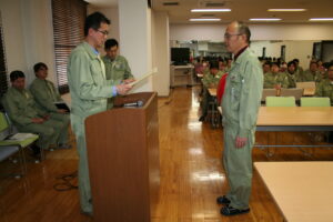 12月28日 無遅刻無欠勤の表彰、改善提案の表彰、優良社員の表彰を行いました。