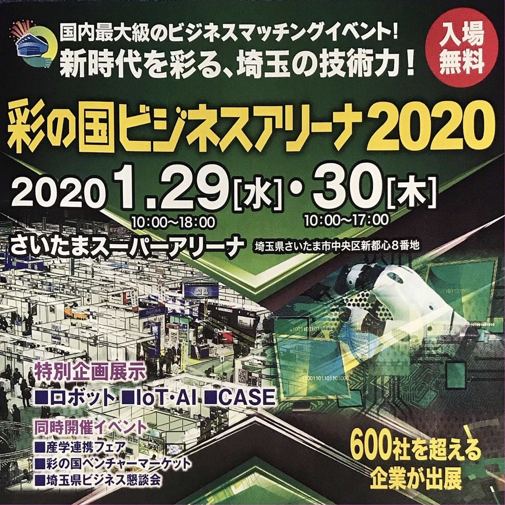 2020年1月29~30日 さいたまスーパーアリーナ で開催された『彩の国ビジネスアリーナ2020』に出展しました。 おかげさまで、弊社のブースにも、たくさんの方々に来場して貰えま…