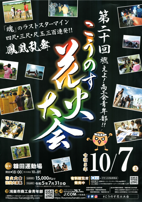 10/7に開催される鴻巣市花火大会を、今年も協賛しました。     大規模な四尺玉が名物の花火大会です。 是非お越し下さい。